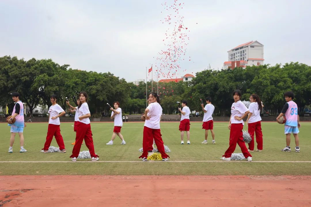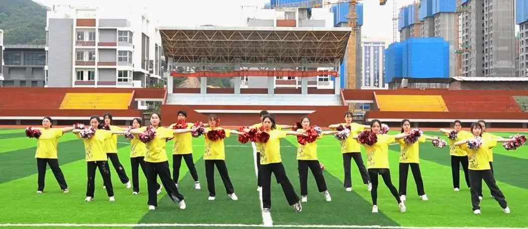 啦啦操齐舞现场,氛围热烈,各二级学院啦啦操代表队登台亮相,赛出风采,绽放闽科学子青春风采。