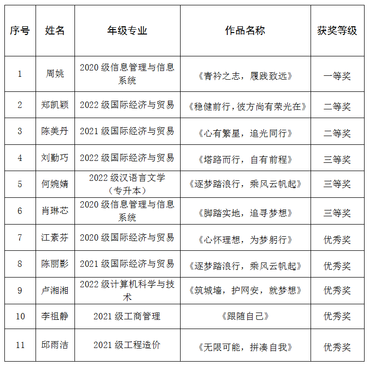 本次大赛由校学工处、校团委和商学院联合举办,大赛聚焦大学生职业生涯发展问题,积极引导同学们树立正确的成才观、职业观、就业观,进一步增强同学们的专业能力和综合素养,对同学们未来的择业和就业起到了一定的帮助和指导作用。