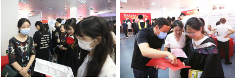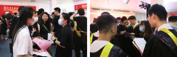 招聘会现场气氛热烈,秩序井然,毕业生手持精心准备的求职简历,就自己感兴趣的招聘岗位要求、薪资待遇、个人发展前景等问题与用人单位面对面交流。