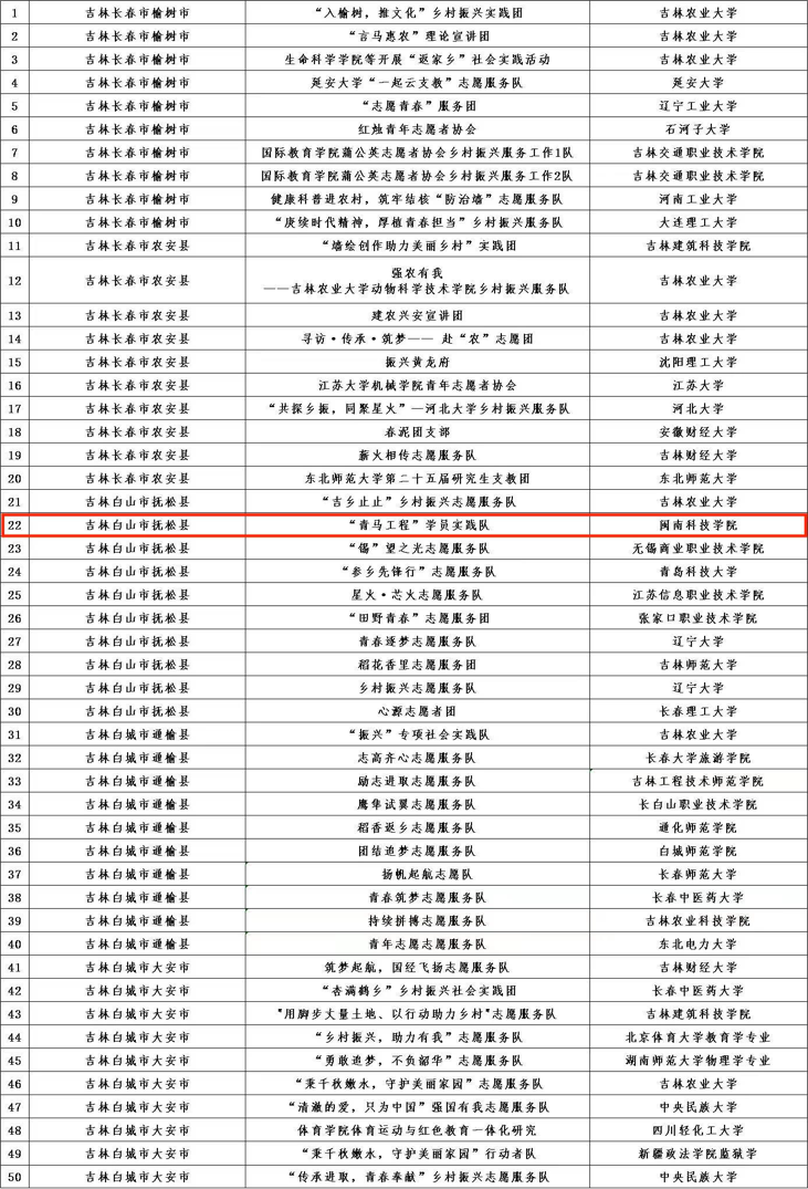2023年全国大学生“乡村振兴”志愿服务项目入选团队名单