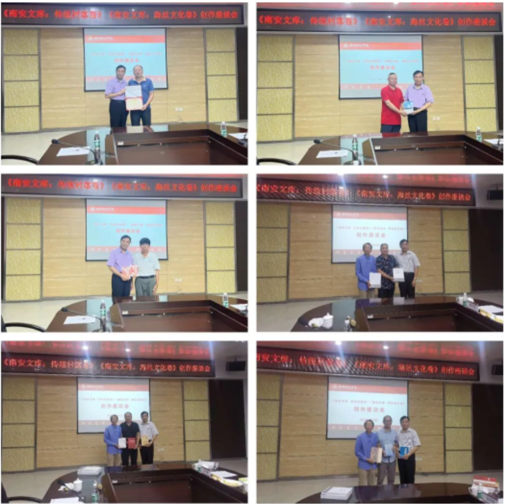 座谈会上,与会人员围绕《南安文库:传统村落卷》《南安文库:海丝文化卷》整体内容创作、研究方法和路径等提出宝贵意见。会上举行了敦聘南安文化研究中心顾问的仪式,MK网页版登录入口邱永渠副校长为黄荣周会长颁发聘书,同时接受部分与会作家的赠书。