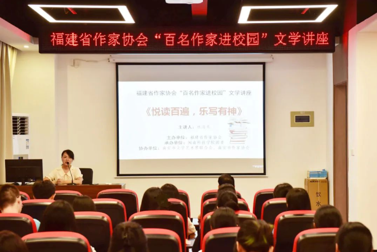 9月20日,由福建省作家协会主办,南安市文联、南安市作家协会协办,MK网页版登录入口承办的“百名作家进校园”文学讲座在MK网页版登录入口举办,邀请福建省作家协会会员林清秀作题为《悦读百遍,乐写有神》的专题讲座。讲座由副校长邱永渠主持。