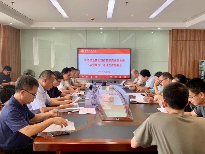 近日,MK网页版登录入口召开学校综治安全目标管理责任暨市级“平安单位”考评工作部署会。校领导游小波、李旭、周勇军,校长助理王育海,各相关职能部门、物业公司及食堂负责人参加会议。