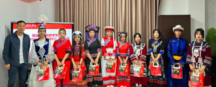 校长助理王育海向少数民族学生赠送《习近平与大学生朋友们》及纪念品