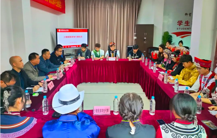 座谈会上,林树生强调,同学们要像石榴籽一样紧紧抱在一起,手足相亲、守望相助,为中华民族伟大复兴不懈奋斗,并勉励大家:一是坚定信念,铸牢中华民族共同体意识。发扬传承少数民族学生的“石榴籽”精神,团结友爱、互帮互助,维护民族团结,树立正确的价值观,增强文化自信,铸牢坚定的民族团结意识和中华民族命运共同体意识。二是勤奋好学,在中国梦的生动实践中寻找人生的坐标。牟定目标,做好职业生涯规划,运用好校内外教育平台和优质资源,全面提升个人综合能力,锻造好本领。三是勇担使命,努力成为堪当民族复兴重任的时代新人。将“小我融入大我”,加强各族学生之间的交流与互动,发挥特色文化优势,为建设和美家园做出贡献,努力成为勇担使命的时代新人。