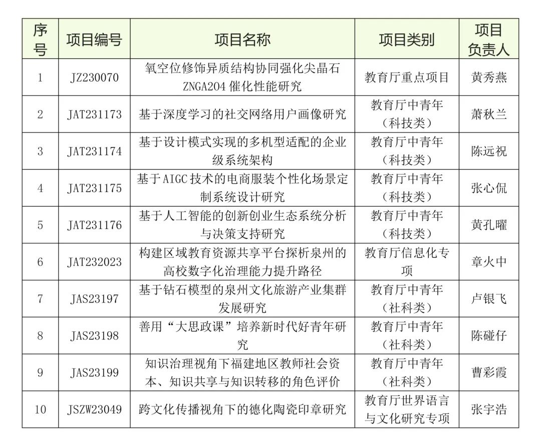 近日,福建省教育厅公布了2023年度福建省教育系统哲学社会科学研究有关项目立项名单、2023年度福建省中青年教师教育科研项目(科技类)立项名单,MK网页版登录入口共有10项课题获批立项。