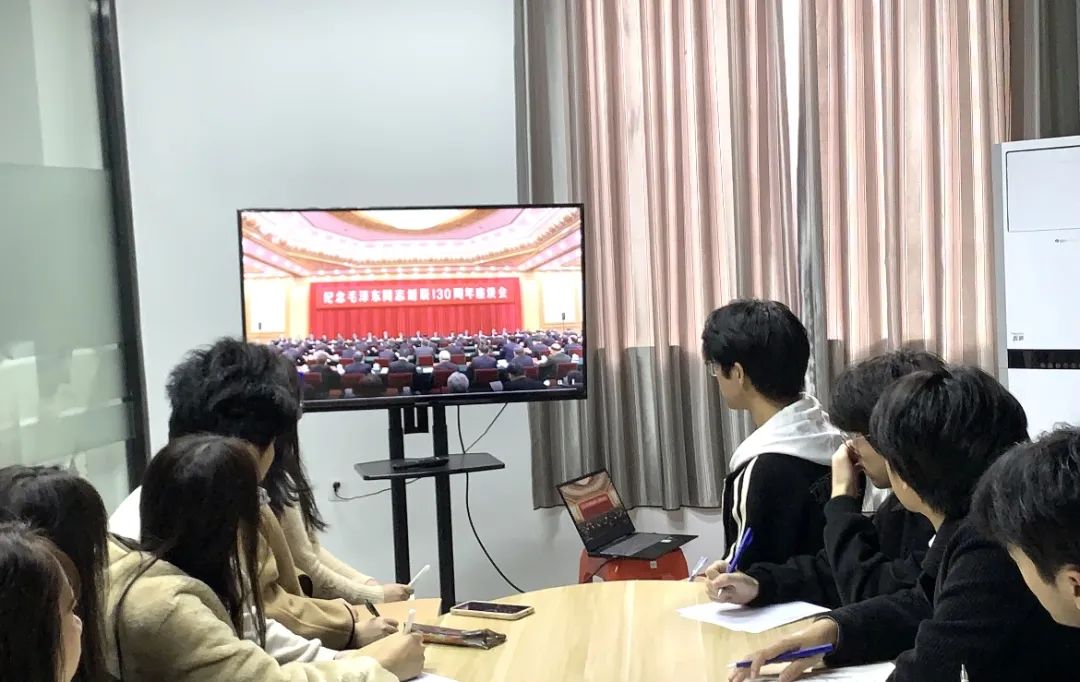 各单位专题学习习近平总书记在纪念毛泽东同志诞辰130周年座谈会上的重要讲话精神,坚定理想信念,凝聚精神力量。