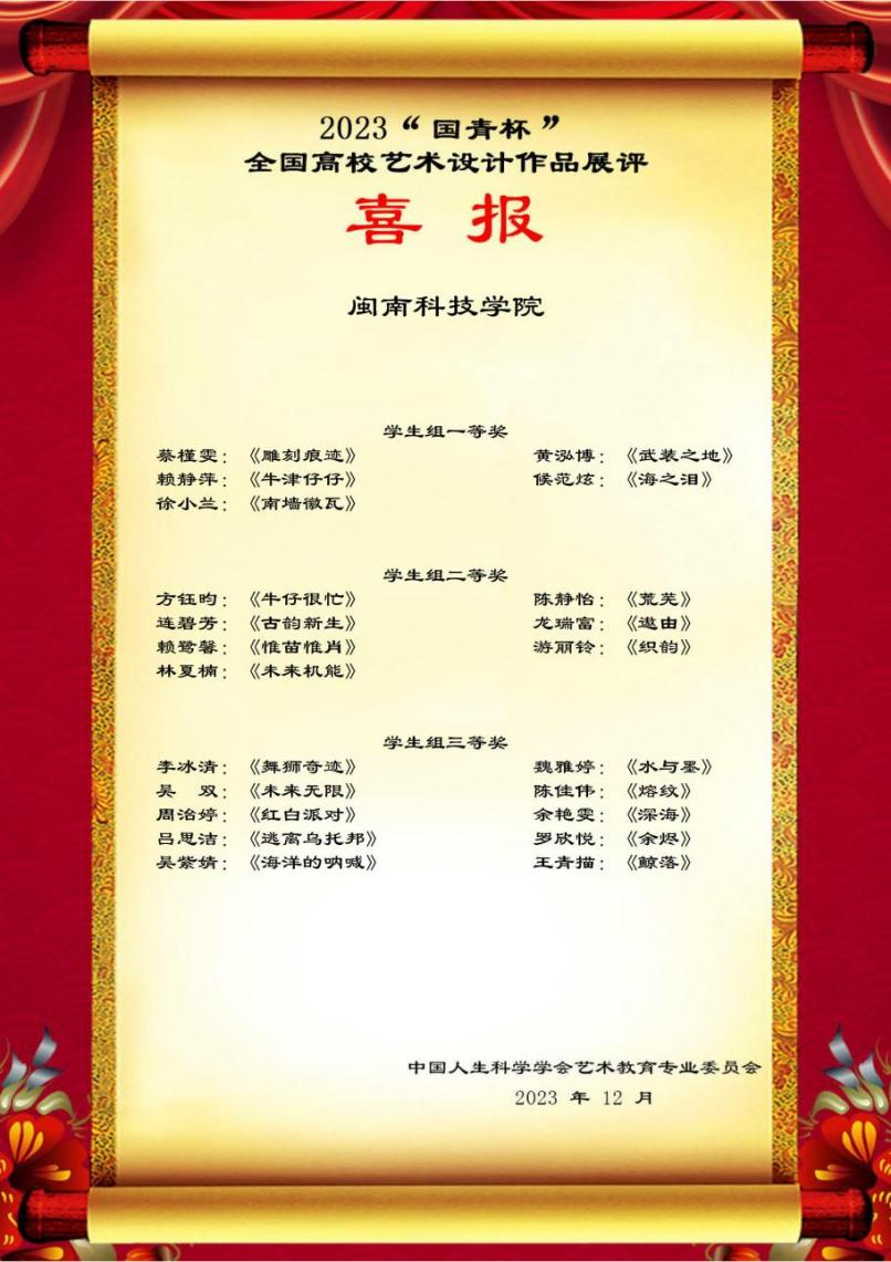 2023“国青杯”全国高校艺术设计作品大赛获奖名单