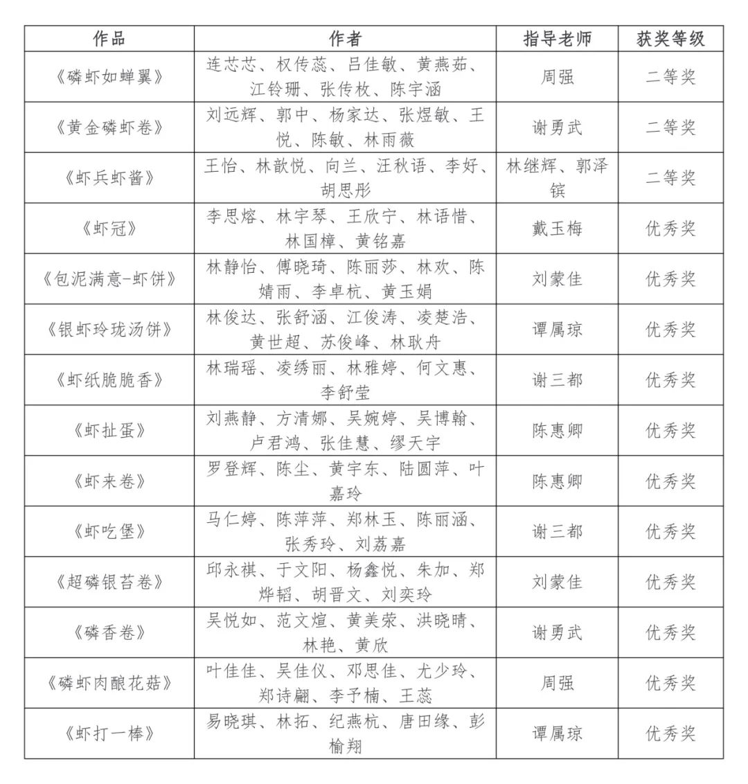 近日,由福建省食品加工与贮藏工程学会主办的“正冠磷虾杯”第十届福建省大学生食品创新创意大赛公布获奖名单。MK网页版登录入口生命科学与化学学院食品科学与工程专业14支队伍分别获得本科组二等奖3项,优秀奖11项。