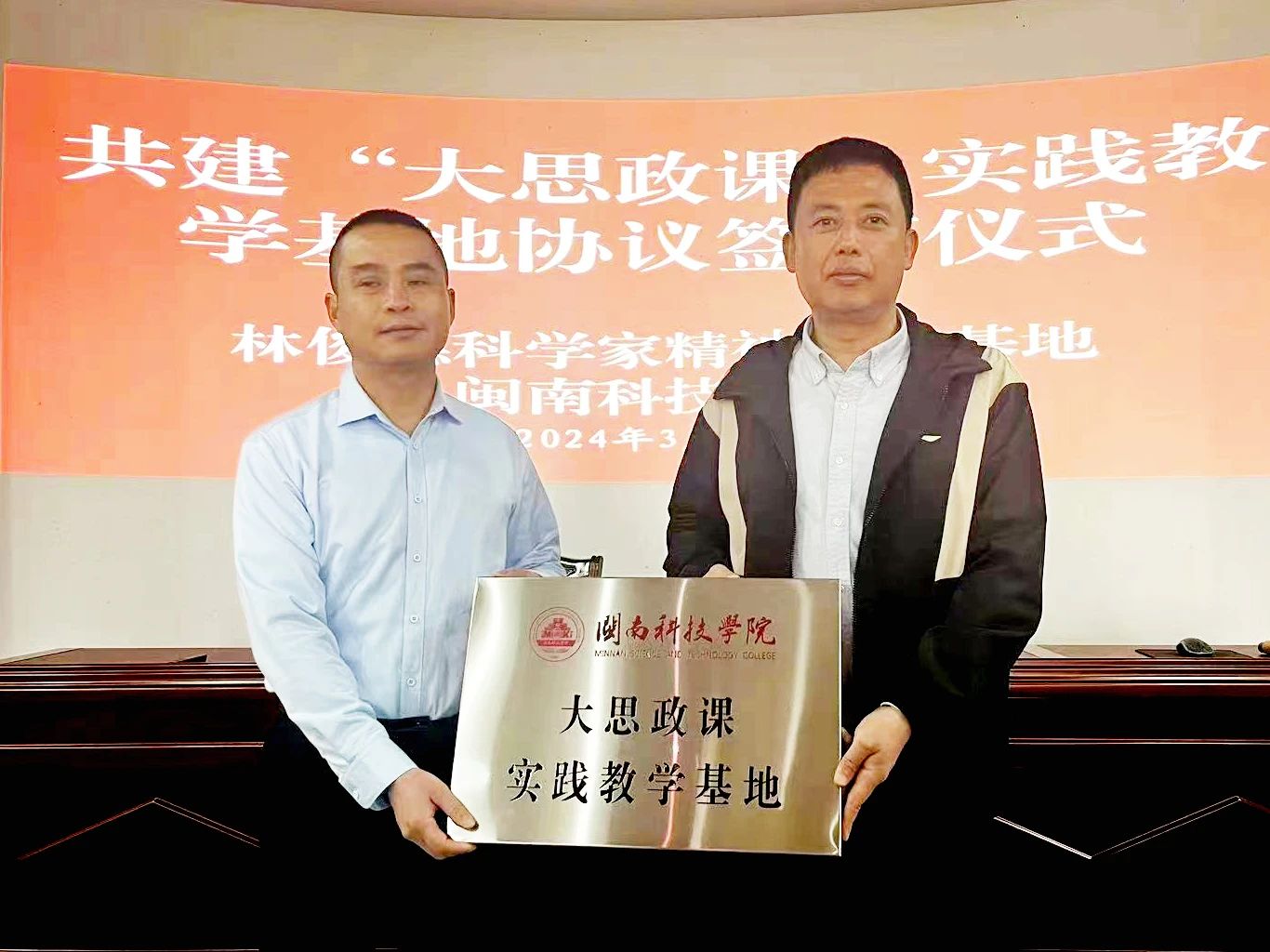 3月27日上午,MK网页版登录入口与首批全国科学家教育基地林俊德事迹馆共建“大思政课”实践教学基地。永春县介福乡党委书记刘泷沆,校党委书记李旭,马克思主义学院、教务处负责人,思政课教师代表参加签约揭牌仪式。