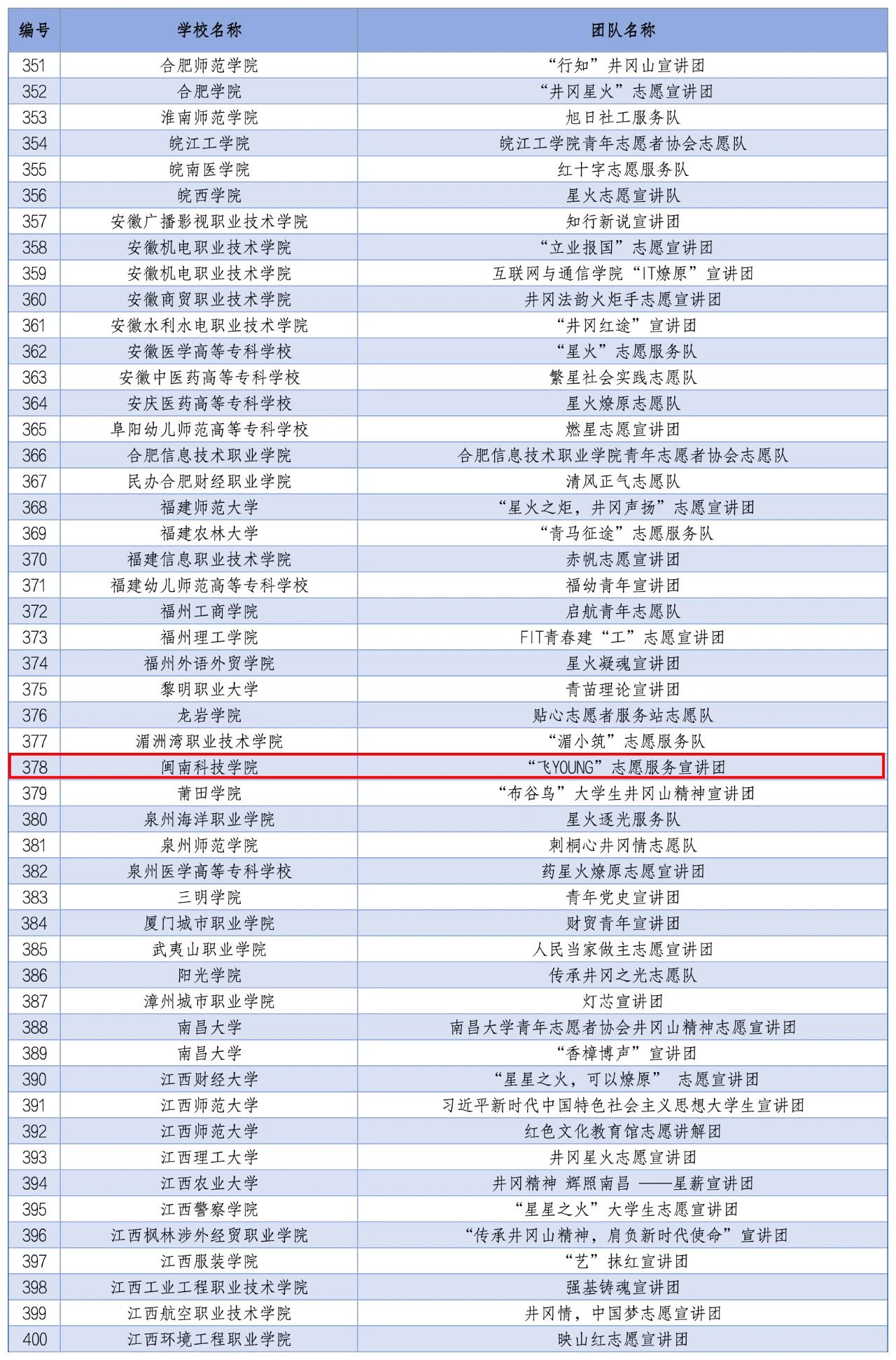 2024年全国大学生井冈山精神志愿宣讲团入选团队名单