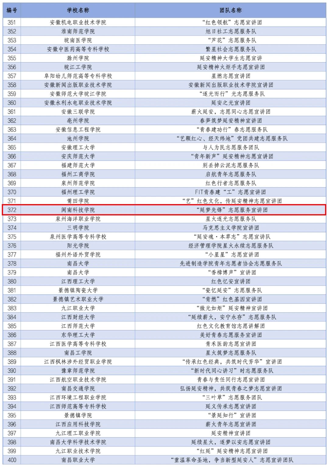2024年全国大学生延安精神志愿宣讲团入选团队名单